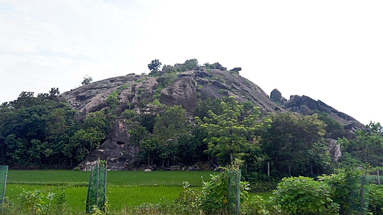 পরদিন ব্রেকফাস্ট করে যাত্রা শুরু হল। গাইড সকালেই হাজির হয়েছিলেন হোটেলে। জানা গেল, হোটেল থেকে দেবকুণ্ড কমবেশি ১০০ কিমি। হিসেব মতো দু’ঘণ্টায় পৌঁছে যাওয়া যাবে। শহর ছাড়তেই মন ভাল করা দৃশ্য একের পর এক হাজির হতে থাকল চোখের সামনে। সবুজে সবুজ চার দিক। যত এগোচ্ছি, ততই ঘন হচ্ছে সবুজ। সঙ্গে চমকও। রাস্তার বাঁক ঘুরতে আচমকাই চোখের সামনে হাজির হচ্ছে ছোট-বড় পাহাড়। যদিও বর্ষাকাল। কিন্তু যাত্রা শুরুর সময়ে ঘন নীল আকাশের বুকে কালো মেঘের লেশমাত্রও ছিল না। দেখলাম, সবুজ পাহাড়ের খাঁজে খাঁজে আটকে মেঘপুঞ্জ। কখনও কখনও উড়ে এসে আটকে যাচ্ছে বড় মেঘের টুকরো। সবুজ কার্পেটের উপর ধবল মেঘের এমন ছোটাছুটিতে যেন মন ভাল করার ওষুধ লুকিয়ে রাখা ছিল। কিন্তু থামতে সেই হলই। কিছুটা গিয়েই। ততক্ষণে দমকা হাওয়া শুরু হয়েছে। সঙ্গে কালো মেঘের হুটোপাটি। কালচে চাদরে মুখ লুকোনো সূর্যের বিচ্ছুরণ এমন মায়াবী আলো ঢেলেছে সবুজ ধানখেতের উপরে যে, গাড়ি থেকে না নামাটা অপরাধ বলে মনে হত। আর নামার আরও বড় কারণ একটি ছোট্ট টিলা মতো পাহাড়। ঠিক পুরুলিয়ার জয়চণ্ডী পাহাড়ের মতো যেন। তবে পুরুলিয়ার মতো এ প্রান্তর রুক্ষ নয়। আদিগন্ত সবুজ। তার মধ্যে ধূসররঙা পাহাড়, দূরে জঙ্গল এবং আরও দূরে পর্বতমালা— এ যেন এক চলমান মায়াবী ছায়াছবি।