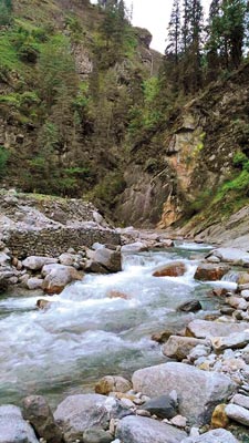 প্রথম দিন আমাদের উৎসাহ তুঙ্গে। হইহই করে হাঁটার পরই অনভ্যস্ত পায়ে শুরু হল ব্যথা। প্রায় ৩ কিমি হেঁটে তাঁবু ফেলা হল বকরথাজে। দু’পাশ দিয়ে বয়ে চলেছে নদী। দুটো নদীর মধ্যিখানে একটু উঁচু জায়গায় আমাদের তাঁবু। জমিয়ে আড্ডা দেওয়ার পর খেয়েদেয়ে সটান স্লিপিং ব্যাগে।