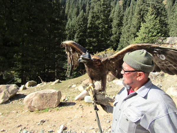 প্রায় ২২০ কিমি উজিয়ে যাওযার পর বালকাচি এসে ডান দিকে নীল জলের রেখা। রাস্তার বাঁ দিকে স্তেপ ভূমি, লালচে বালিয়াড়িতে নেমে এসেছে ঢেউ খেলানো পাহাড়। মাঝে মাঝে চোখে পড়ছে, ঘোড়ার পিঠে দু’-এক জন লোক। কিরঘিজস্তানের এই অঞ্চলে এখনও যাযাবর-সভ্যতা, লোকে ঘোড়া ছোটায়, ইয়ুর্ট বা গোল তাঁবুতে থাকে, ইগল শিকার করে।