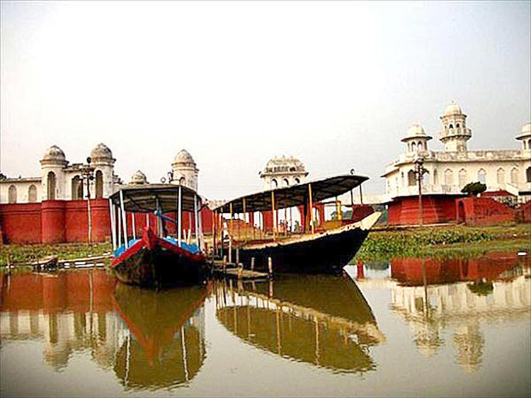 ঘাটের নাম রাজঘাট। বেশ বড়, বাঁধানো— দোতলায় বসার ব্যবস্থা, একতলায় বাজার, পাশে টিকিট কাউন্টার। তখন ঘড়ির কাঁটায় বিকেল চারটে। কাজেই চটপট টিকিট কেটে মোটরবোটে চেপে বসা গেল। জল কেটে বোট এগোতে লাগল আর প্রাসাদটা ক্রমশ কাছে আসতে শুরু করল। মিনিট দশেক পর প্রাসাদের ঘাটে যখন নামছি তখন মাঝি বেশ কড়া করে বলে দিলেন, “চল্লিশ মিনিটের মধ্যে ফিরে আসবেন কিন্তু।” প্রাসাদের দরজা দিয়ে ঢুকেই দেখা গেল সবুজ ঘাসের লন। রয়েছে বেশ কয়েক রকম ফুলগাছও। শীতকালে প্রচুর পাখিও আসে বলে শোনা গেল। এর দু’পাশে নানা মহল। মানে, জলের মাঝখানে হলেও রাজপ্রাসাদে যা যা দরকার, তার সবই আছে নীরমহলে।