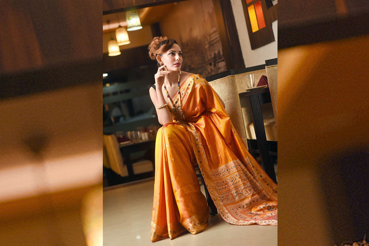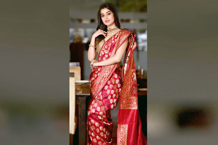 রংবাহারি মখমলি শাড়ির আঁচলে নিপুণ ফোঁড়। তাতে পুরনো দিনের চৈনিক বস্ত্রের আদলে চৌখুপি ফ্রেমে আঁটা সব ছবি। সেই আয়তক্ষেত্রে বসে আছেন স্বয়ং সুবেদার সুজা, রাজনন্দিনী, সাহেব, মেম, হুঁকোবরদার, জাহাজ কাপ্তেন, ঐরাবত, বন্দুকবাজ এমনকী রম্ভা-মেনকা-উর্বশীও। জমকালো বুটিদার এই সব বালুচরি তাঁতি বৌরা পৌঁছে দিতেন অভিজাত অন্দরমহলে। শিল্পীর নাম ছড়ালে তাঁর ডাক পড়ত নবাব হারেমে। বেগমেরও অঙ্গে উঠত শৌখিন বালুচরি। শতক পেরিয়ে ঠাকুরবাড়ির দেরাজেও কদর পেয়েছিল এই শাড়ি। অবনীন্দ্রনাথ ঠাকুর মহর্ষিজায়ার অপূর্ব ছবি এঁকেছেন তাঁর লেখনীতে— ‘‘পঙ্খের কাজ করা মেঝে, মেঝেতে কার্পেট পাতা, এক পাশে একটি পিদিম জ্বলছে— বালুচরী শাড়ি পরে সাদা চুলে লাল সিঁদুর টক্টক্ করছে— কর্তাদিদিমা বসে আছেন তক্তপোশে।’’ সেকালের মতো একালেও টকটকে রঙের বালুচরি দেখলে ভেসে আসবেই সম্ভ্রম।