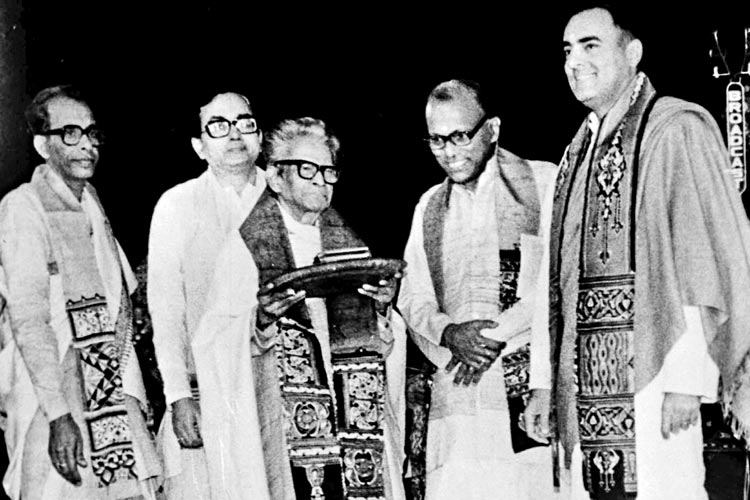 রাজীব গাঁধীর হাত থেকে ‘দেশিকোত্তম’। ১৯৮৮ সালে