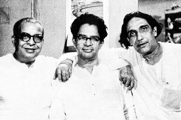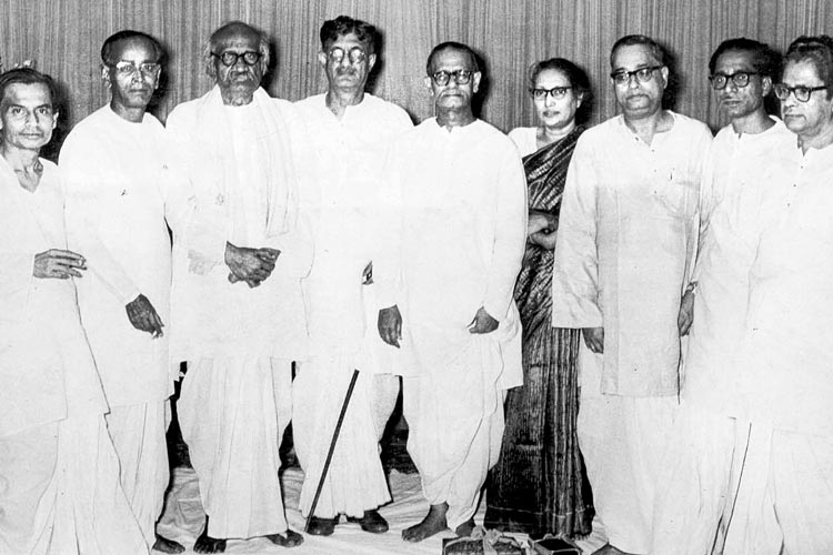 (বাঁ দিক থেকে) বুদ্ধদেব বসু, তারাশঙ্কর বন্দ্যোপাধ্যায়, কালিদাস রায়, তুষারকান্তি ঘোষ, প্রফুল্ল সেন,