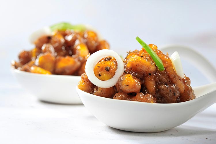 প্রণালী: ময়দা, গোলমরিচ, নুন ও কর্নফ্লাওয়ার দিয়ে ভুট্টার দানা ম্যারিনেট করতে হবে। মিনিট ২০ পরে, একটা পাত্রে রাইস ফ্লাওয়ার নিয়ে তার মধ্যে ভুট্টার দানা দিয়ে ভাল করে মিশিয়ে নিতে হবে। এ বার ফ্রায়িং প্যানে সাদা তেল দিয়ে তার মধ্যে আদা, রসুন কুচি দিয়ে একটু নাড়তে হবে। তার পর কর্নগুলো দিয়ে সেলেরি, নুন, গোলমরিচ, টম্যাটো সস ও রসুন দিয়ে ভাল করে নাড়তে হবে। পেঁয়াজ কুচি দিয়ে সাজিয়ে পরিবেশন করুন।