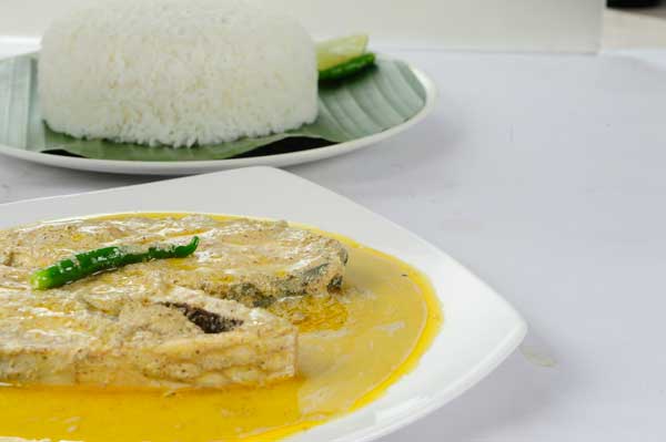 উপকরণ: ১ কেজির ইলিশ (টুকরো করা), সাদা সরষে ও কালো সরষে ২ টেব্লচামচ করে (দু’রকম সরষে খুব ভাল করে বেটে নেওয়া, সঙ্গে দুটো কাঁচা লংকা, এর মধ্যে এক চা-চামচ নুন ও সামান্য জল দিয়ে মিশিয়ে তৈরি করা একটি পেস্ট), হলুদ ১ চা-চামচ, লাল লংকার গুঁড়ো ১ চা-চামচ, কাশ্মীরি লংকার গুঁড়ো হাফ চা-চামচ, সরষের তেল ৪-৫ টেব্লচামচ, চেরা কাঁচা লংকা ৮-১০টি, হাফ কাপ জল, নুন স্বাদমতো।