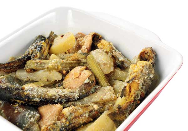উপকরণ: ছোট ট্যাংরা ২৫০ গ্রাম (পাবদা, পারশে কিংবা অন্য কোনও ছোট মাছ দিয়েও রান্নাটি করতে পারেন), মাঝারি সাইজের ১টি আলু খোসা ছাড়িয়ে ডুমো-ডুমো করে কেটে নিন, মাঝারি সাইজের ১টি বেগুন লম্বা করে টুকরো-টুকরো করুন (দু’ইঞ্চি মাপ রাখলে ভাল হয়), একটি কাঁচাকলা খোসা ছাড়িয়ে টুকরো করুন (এক ইঞ্চি মাপ রাখলে ভাল হয়), পটল ৪টি (লম্বালম্বিভাবে মাঝখান থেকে কেটে ৪ টুকরো করুন), সাদা মুলো ১টি (খোসা ছাড়িয়ে ১ ইঞ্চি মাপে টুকরো করুন), ডাঁটা ৪টি (খোসা ছাড়িয়ে দু’ টুকরো করা), ফুলকপি ১০০ গ্রাম, হলুদ ১ চামচ, জিরেবাটা হাফ টেব্ল চামচ, ধনেবাটা হাফ টেব্ল চামচ, সরষেবাটা ১ চামচ, পোস্তবাটা ১ চামচ, মেথি সামান্য, মৌরি এক চিমটে, গোটা সরষে এক চিমটে, সরষের তেল বা অন্য তেল ৩-৪ টেব্ল চামচ, দুধ ২ টেব্ল চামচ বা লাগলে আর একটু বেশি, নুন ও চিনি স্বাদমতো, কোরানো নারকেল ১ টেব্ল চামচ, বড়ি ৪টে (ভাল করে ভেজে গুঁড়ো করে নিন)।