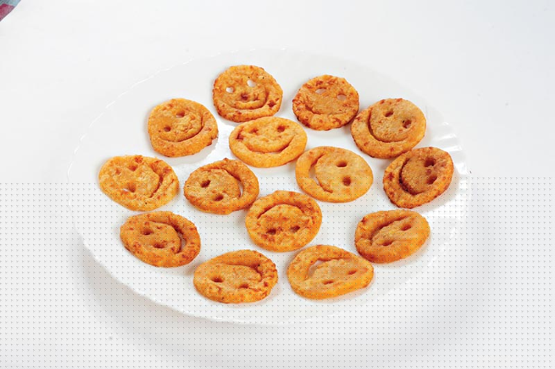 প্রণালী: আলু সিদ্ধ করে খোসা ছাড়িয়ে গ্রেট করে নিন৷ একটি বাটিতে আলু সিদ্ধ, কর্নফ্লাওয়ার, বিস্কিটের গুঁড়ো, নুন, আমচুর পাউডার, শুকনো লঙ্কা গুঁড়ো মিশিয়ে ভাল করে মেখে একটা মণ্ড তৈরি করুন৷ সেই মণ্ডটা অল্প তেল মাখিয়ে দশ মিনিট ঢেকে রাখুন। এ বার ময়দা ছিটিয়ে মণ্ডটা মোটা করে বেলে নিন। কোনও গোল ঢাকনা, বাটি অথবা কুকি কাটারের সাহায্যে গোল গোল করে আলু কেটে নিন। তার পর স্ট্রয়ের সাহায্যে চোখ বানান আর চামচ দিয়ে কেটে মুখ তৈরি করে নিন। কড়াইয়ে তেল গরম করে পটেটো স্মাইলি লালচে সোনালি করে ভেজে তুলে নিন। টক-মিষ্টি সস কিংবা মেয়োনিজের সঙ্গে গরম গরম পরিবেশন করুন পটেটো স্মাইলি।