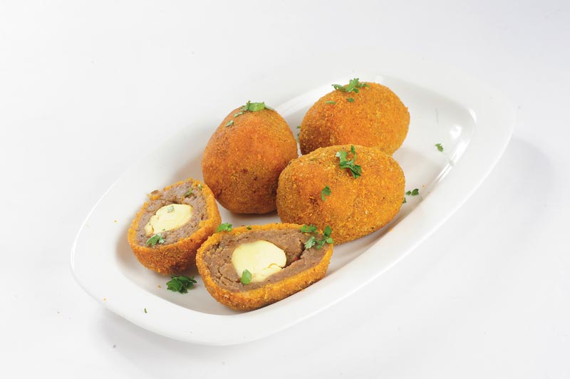 প্রণালী: আলু সিদ্ধ করে হাত দিয়ে চটকে নিন। ডিম সিদ্ধ করে ডিমের কুসুম আলাদা করে বের করে নিন৷ এ বার একটি বাটিতে আলু সিদ্ধ, কর্নফ্লাওয়ার, অরিগ্যানো, নুন, চিলি ফ্লেক্স, দুধে ভেজানো পাউরুটি, গোলমরিচ গুঁড়ো একসঙ্গে ভাল করে মিশিয়ে মেখে রাখুন৷ কড়াইয়ে অল্প তেল গরম করে মিশ্রণটা হালকা নাড়াচাড়া করে নামিয়ে নিন। এ বার এই ভাজা মিশ্রণটা থেকে ছোট ছোট লেচি কেটে নিন। প্রতিটি লেচির মাঝে সিদ্ধ কুসুম ভরে ভাল করে ডিমের আকার গড়ে তুলুন। একটি বাটিতে ডিম, নুন ও গোলমরিচ গুঁড়ো একসঙ্গে ফেটিয়ে রাখুন। কুসুমভরা আলু প্রথমে ডিমের গোলায় ডুবিয়ে, বিস্কিটের গুঁড়ো মাখিয়ে ছাঁকা তেলে ভাজুন। সেগুলোর গায়ে লালচে সোনালি রং ধরলে নামিয়ে নিন। স্যালাডের সঙ্গে গরম গরম পরিবেশন করুন ম্যাশড পটেটো এগ।