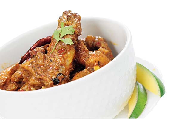 পদ্ধতি: একটি বড় পাত্রে মুরগির মাংস রেখে তাতে লঙ্কাগুঁড়ো, হলুদ গুঁড়ো, নুন মিশিয়ে রেখে দিতে হবে ১৫-২০ মিনিট। একটি কড়াইয়ে সাদা তেল দিয়ে তাতে একে একে এলাচ, দারচিনি, লবঙ্গ, মেথি, তেজপাতা, শুকনো লঙ্কা ফোড়ন দিয়ে তার মধ্যে পরপর পেঁয়াজ, আদা, রসুন কুচি দিয়ে ভাল করে কষাতে হবে। এর পর তাতে টম্যাটো কুচি, জিরে এবং ধনে গুঁড়ো দিয়ে কষাতে হবে। মশলার নিজস্ব গন্ধ বেরোলে তাতে ম্যারিনেট করে রাখা মাংস এবং কাঁচা আমের কুচি দিয়ে মিশিয়ে, স্বাদমতো নুন মিষ্টি দিয়ে ঢাকা দিয়ে (১৫-২০ মিনিট) দিন। মাংস সেদ্ধ হলে নামিয়ে পরিবেশন করতে হবে। ভাত এমনকী পরোটার সঙ্গেও কিন্তু সমান উপভোগ্য হবে এই সুস্বাদু পদটি।