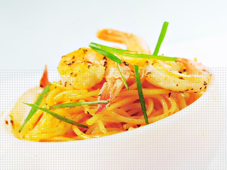 স্প্যাগেতি উইথ প্রন অ্যান্ড পেস্তো