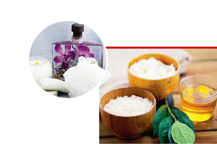 তার পর ধরুন, রূপকথার দুধপুকুর। এক কলস থেকে অফুরান দুধ আর অন্য ঘটি থেকে ঘন মধু ঢালার কাউকে না পেলেও ক্ষতি নেই। বড় বালতিতে দুধ ও জল সম পরিমাণে মিশিয়ে, তাতে ঢালুন মধু। তার চেয়ে ভাল প্রাকৃতিক ময়শ্চরাইজ়ার আছে কই? একটু ল্যাভেন্ডার, এসেনশিয়াল অয়েল মিশিয়ে নিন। এই স্নানে ত্বক আশ্চর্য পরিষ্কার হয়। শোনা যায়, ক্লিওপেত্রার অনুচরেরা ডেড সি থেকে আনা লবণদানায় ঘি মাখিয়ে রানির অঙ্গচর্চা করতেন। আপনাকে অত দূর যেতে হবে না। বাজার থেকে ব্রাউন সুগারটুকু জোগাড় করুন। তাতে জলপাই তেল মেশালেই স্ক্রাব তৈরি। পায়ের বর্জ্যকোষ তুলুক সি সল্ট বা সমুদ্রবালির কণা।