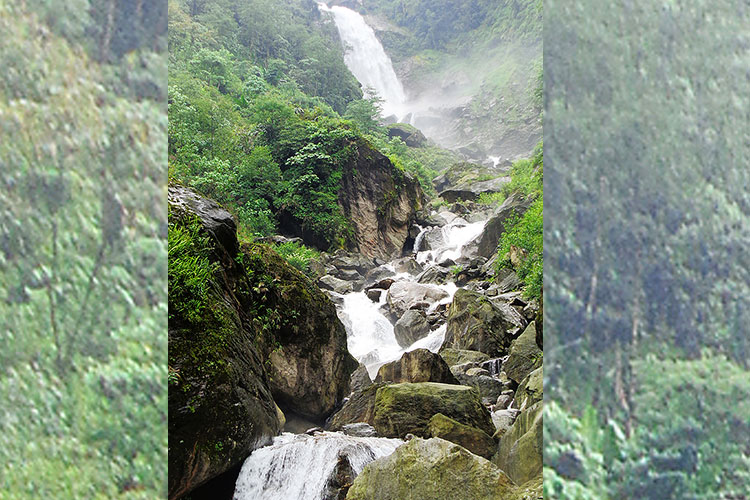 আমরা গাড়িতে সওয়ার। পেলিংকে টাটা করে ইয়াকসমের পথে। ঠিক ২৪ ঘণ্টা পরে। রাস্তার দু’ধারের সবুজ এখানে আরও ঘন। শেষ জুনের সকালে আমরা সাদা মেঘের চাদরে ক্রমেই ঢাকা পড়ে যাচ্ছি। নাম না জানা পাখিরা এখানে আপন খেয়ালে কথা বলে। আছে রাস্তা উপচে পড়া ঝর্নার গান। প্রকৃতির এই তল্লাটে আসা ইস্তক মনে হচ্ছে, নাম না জানা, নাম না দেওয়া কত শত ঝর্না সৌন্দর্য বিলোচ্ছে। এখানকার নাম ইয়াকসম হলেও পোশাকি নাম হতেই পারত ‘নৈঃশব্দ্যপুর’।