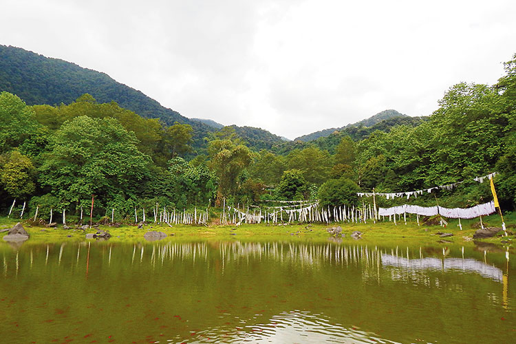 এখানে উচ্চতা খানিকটা বেশি। প্রকৃতির রূপও ভিন্ন। রোদের ঝিলিক আর নীল আকাশকে সাক্ষী রেখে থামা গেল। চোখ বুলিয়ে ঠাহর করা গেল পাহাড়িগঞ্জের চেহারা। সাইন বোর্ড জানান দিল পৌঁছে গিয়েছি পশ্চিম ইয়াকসমে। হোটেলে মেনু বাতলে আমরা ফের টহলে। ইয়াকসম এক সময়ের রাজধানী বলেই গুরুত্বপূর্ণ এমনটা নয়। এখানকার ইতিহাস সমৃদ্ধ। ১৭০০ খ্রিস্টাব্দের শুরুতে সিকিমে বৌদ্ধ মন্দির তৈরি হয়। এই মন্দিরে খানিক সময় নিয়ে আসতে হবে। একটা সময়ের পরে গাড়ি আর উঠবে না। চড়াই পাহাড়ি রাস্তা। কয়েক কদম হাঁটা পথ। পা যখন দু’দণ্ড বিশ্রাম চাইছে, একটা গাছ চোখ টেনে নিল। অন্তত দুশো ফুটের পাইন গাছটা বিরাট এলাকা জুড়ে সাম্রাজ্য বিস্তার করেছে। পুরাতত্ত্বের সাইন বোর্ড জানান দিল ওই পাইনটিই সিকিমের প্রাচীনতম। অস্ট্রেলিয়া থেকে ইয়াকসমে এসেছেন দাড়িও ফো। তাঁর আক্ষেপ, ভিসার মেয়াদ শেষ। তাই ইয়াকসম ছাড়তে হচ্ছে। এখানে ইতিহাসের সঙ্গেই রয়েছে চোখ জোড়ানো একাধিক লেক। সেই লেকে আকাশের নীল রং মিশে রঙিন মাছ খেলা করছে।