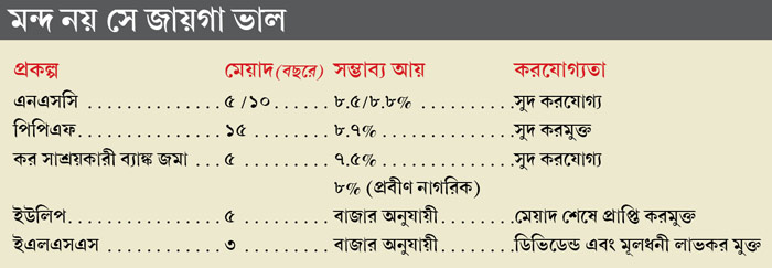 তা ছাড়া, কর বাঁচানোর তাগিদে যদি কিছু টাকা সঞ্চয় হয়ে যায়, তবে মন্দ কী? এই তাগিদ না-থাকলে তো তা হত না। কর সাশ্রয়ের জন্য সাধারণত টাকা জমা রাখতে হয় ৩ থেকে ৫ বছর। পাঁচ বছর পরে এই টাকা প্রতি বছর যখন সুদে-আসলে ফেরত আসতে শুরু করবে, তখন সেটাই আবার লগ্নি করা যাবে ওই বছরে কর বাঁচানোর জন্য। অর্থাৎ, এক বার কষ্টেসৃষ্টে প্রথম ৩-৫ বছর পার করে দিতে পারলে, মাছের তেলেই মাছ ভাজা যাবে।