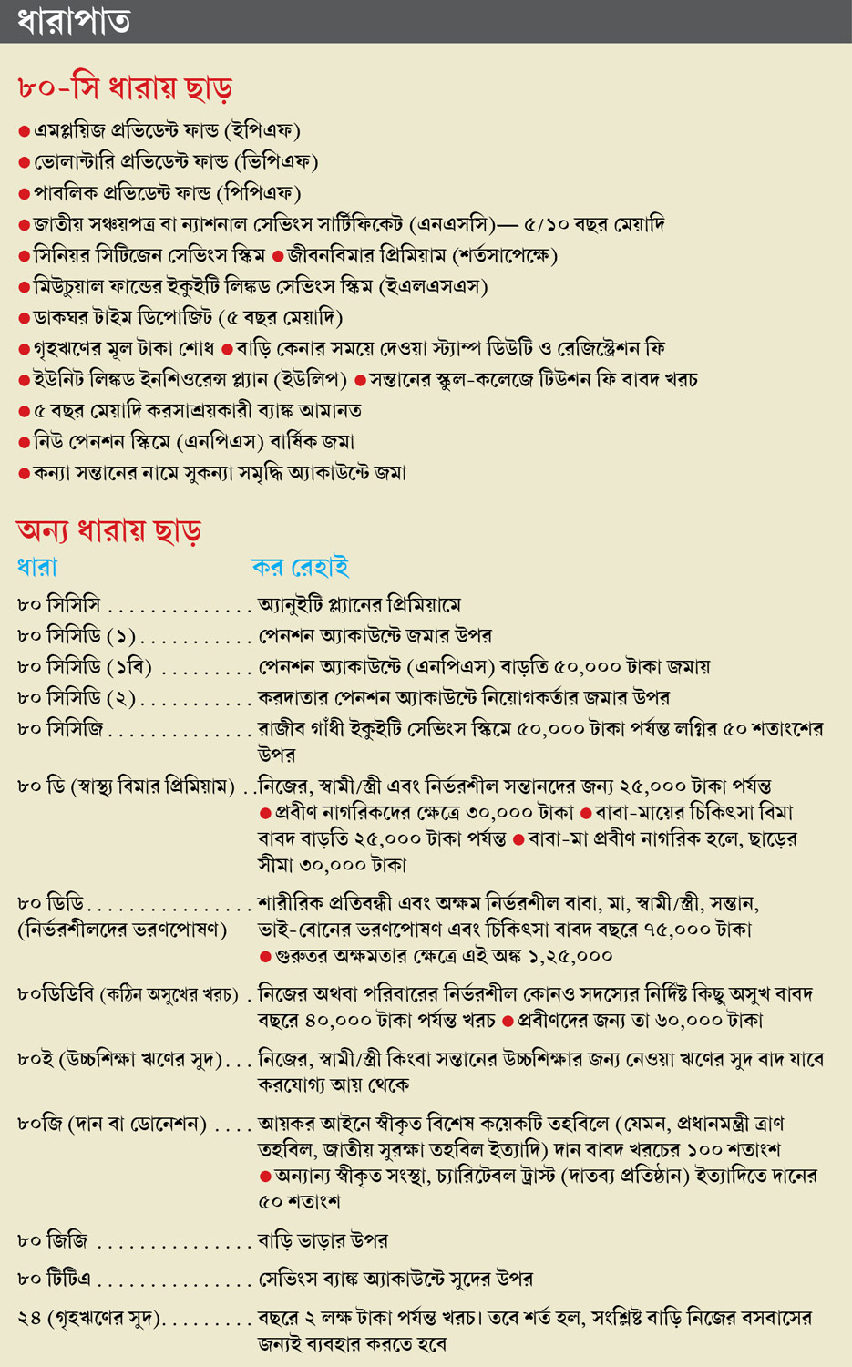 বলা আছে কয়েকটি খরচের কথাও, যা করলে মিলবে কর রেহাই।
