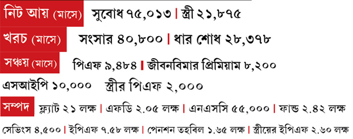 পরামর্শ: ফিক্সড ডিপোজিট বা মিউচুয়াল ফান্ডের মতো খাতে যে- সম্পদ জমে উঠেছে, তা দিয়ে সুবোধ বর্তমান ঋণ শোধ করে দিতে পারেন।