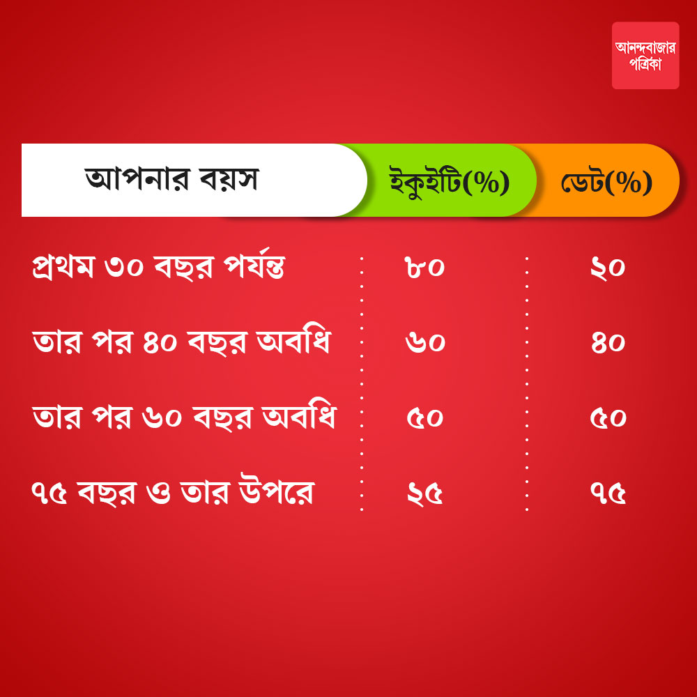 আপনার বয়স ইক্যুইটি(%) ডেট(%)