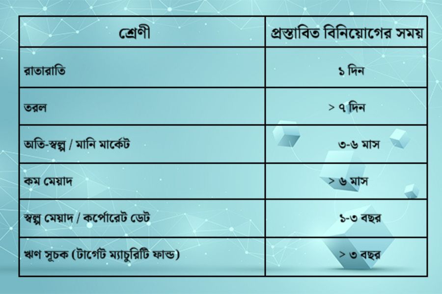 ১। ইক্যুইটি বিনিয়োগ যেমন দীর্ঘ মেয়াদের, ডেট ফান্ডের ক্ষেত্রে যে কোনও মেয়াদে বিনিয়োগেরসুযোগ রয়েছে।