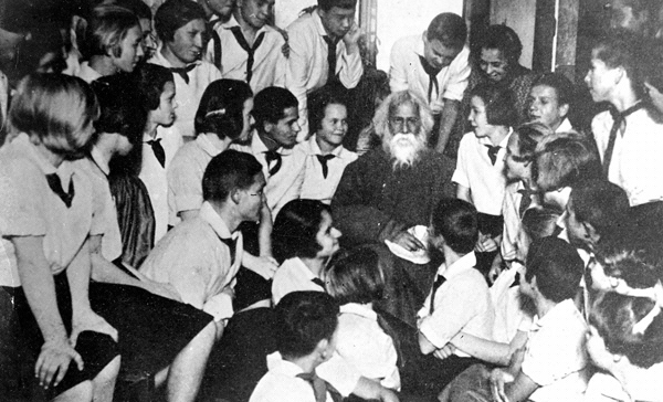 বিদেশে শিক্ষার্থীদের সঙ্গে রবীন্দ্রনাথ।