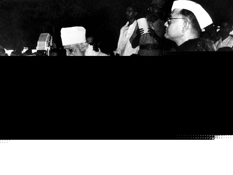 মহাজাতি সদনের শিলান্যাস অনুষ্ঠানে রবীন্দ্রনাথ ঠাকুর, শরত্চন্দ্র বসু, সুভাসচন্দ্র বসু এবং অন্যরা।