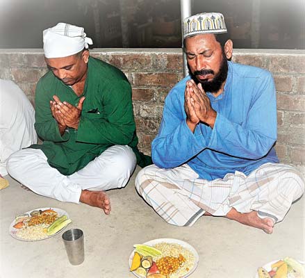 পার্থর হাত দোয়া চাওয়ার ভঙ্গিতে, ইমাম সাহেব করজোড়ে। ছবি: সুদীপ ভট্টাচার্য