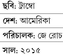 ‘অ-আমেরিকানসুলভ কাণ্ডকারখানা’র জেরে ট্রাম্বোর শুধু চাকরি যায়নি, তাঁকে জেলেও যেতে হয়েছিল। তাঁর সাধের বাংলো বেচে দিতে হয়। জেল থেকে বেরিয়ে সংসার চালাতে তাঁকে অন্যের নামে চিত্রনাট্য লিখতে হয়। এমনি করেই তিনি লিখে ফেলেছিলেন হলিউডের চিরকালের জনপ্রিয় ব্লকবাস্টার— ‘রোমান হলিডে’। লেখক হিসেবে নাম যায় তাঁরই এক বন্ধুর। সেরা চিত্রনাট্যকারের অস্কারের ট্রফিটাও তিনিই হাতে নেন। ট্রাম্বো পরিবার ঘরে বসে টেলিভিশনে সে দৃশ্য দেখেন। খেয়ে-পরে বাঁচতে হবে, তাই দিন-রাত এক করে, দু’হাতে লিখে যান সস্তা, বি-গ্রেড ছবির চিত্রনাট্য! সেখানে ‘কেমন লিখেছেন’-এর চেয়ে ‘ক’টা লিখলেন’টাই আসল কথা। আদরের মেয়ের জন্মদিনের কেক কাটার সময়টুকুতেও তিনি বাথটবে শুয়ে লিখে যাচ্ছেন। তাঁর মন ভারী, মেজাজ খিটখিটে হয়ে থাকছে। পরিচালক টানা সরল রেখায় ট্রাম্বোর জীবনের গল্পটা বলে গেছেন। পুরনো নিউজ-রিলের আর্কাইভ ফুটেজের সঙ্গে ছবির জন্য তোলা সাদা-কালো দৃশ্যগুলোকেও মসৃণ মেলানো হয়েছে। সেখানে হলিউডের ‘অ্যাক্টর্স গিল্ড’-এর প্রেসিডেন্ট রোনাল্ড রেগনকেও কমিউনিস্ট-বিরোধী বক্তৃতা দিতে দেখা যায়!