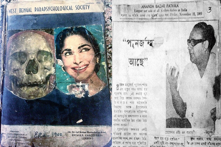 শিরোনামে: ষাটের দশকে আনন্দবাজার পত্রিকায় হেমেন্দ্রনাথ বন্দ্যোপাধ্যায় সম্পর্কে প্রকাশিত খবর। বাঁ দিকে, ওয়েস্ট বেঙ্গল প্যারাসাইকোলজিকাল সোসাইটি-র নামপত্র