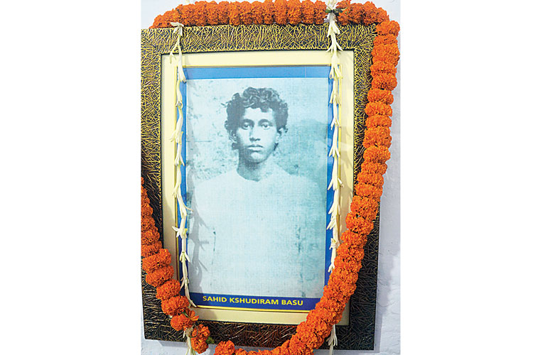 স্মরণ: কারাকক্ষে সজ্জিত ক্ষুদিরাম বসুর ছবি।