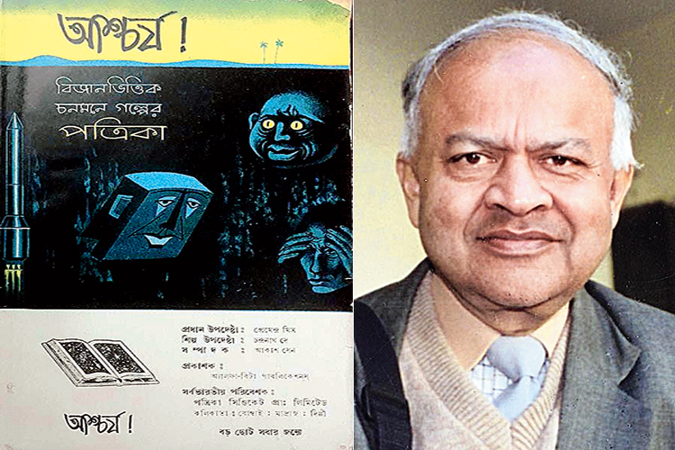 অতীত: অদ্রীশ বর্ধনের ‘আশ্চর্য!’ পত্রিকা। ছবি সৌজন্য: পল্লব রায়। ডান দিকে, জয়ন্তবিষ্ণু নারলিকর