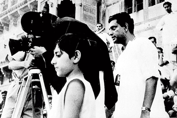 নির্দেশনা: ‘পথের পাঁচালী’র শুটিংয়ে অপু-দুর্গার সঙ্গে সত্যজিৎ রায়।