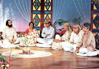 এক বার পুরনো লাহাবাড়িতে, ঊনবিংশ শতাব্দী নিয়ে বৈঠকে, মাইকেলের ভূমিকায় ছিলেন সুনীল গঙ্গোপাধ্যায়, ডিরোজিয়োর ভূমিকায় নিশীথরঞ্জন রায়, বিনোদিনী দাসী কেতকী দত্ত, আমি জ্যোতিরিন্দ্রনাথ ঠাকুরের ভূমিকায়, এই রকম অনেকে। সে বারের প্রযোজক অভিজিৎ দাশগুপ্ত। বঙ্গভঙ্গ বিরোধী আন্দোলনের শতবর্ষে বৈঠকে কত গান হল, রবীন্দ্রনাথ, ডি.এল.রায়, মুকুন্দদাসের লেখা, হল লোকসংগীতও, আর অভিনীত হল ডি. এল. রায়ের নাটক, এগুলির মধ্যে দিয়ে আমরা জানতে পারলাম এই আন্দোলনের কথা।