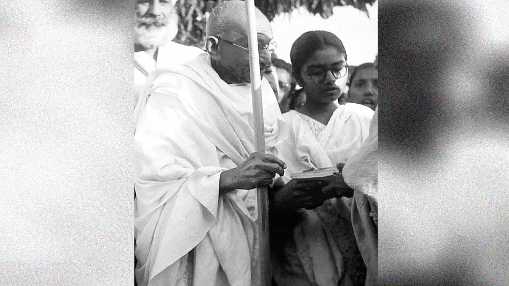 যজ্ঞে আহুতি দিতে কিশোরীটির বিন্দুমাত্র দ্বিধা নেই। গাঁধী জানিয়ে দিলেন, নোয়াখালিতে তাঁর যাত্রাপথের নিত্যসঙ্গী দু’জন — মনু আর নির্মলকুমার বসু। গাঁধীর সঙ্গে মনু আছেন। আবার শুরু হল দিনলিপি লেখা। ওই দিনলিপির একটি রূপ পরে ছাপাও হয়েছিল। মূল গুজরাতি নাম ‘একলা চলো রে’, ইংরেজি অনুবাদ, ‘দি লোনলি পিলগ্রিম’। নির্মলকুমার বসুর পাশে মনুর দিনলিপি পড়া অন্য অভিজ্ঞতা— একই সময়ের অন্তরঙ্গ ও বহিরঙ্গ, দুই ঝোঁকের প্রতিচ্ছেদের পরিসরকে যেন ছুঁতে পারছি। উত্তাল ভারতে এক বৃদ্ধ আর এক কিশোরীর অসম সম্পর্ক গড়ে ওঠার অনুপম দলিল ডায়েরিটি। গাঁধীর সব পরিচর্যা মনু করেন, গুজরাতি চিঠি পড়া আর গুজরাতিতে গাঁধীর উত্তরের শ্রুতিলিখন লেখার ভারও তাঁর উপর। নির্মলকুমারের দফতরে তো ইংরেজি ও বাংলা চিঠি জমা পড়ে। আগের মতো মনুর ডায়েরির পাতা গাঁধী রোজ স্বাক্ষর করেন। গুজরাতি শব্দ ঠাহর করেন, ডায়েরির প্রতিশব্দ হিসেবে ‘রোজনিশি’ বা ‘নিত্যনোন্ধ’ লেখা বিধেয়। মন্তব্য জুড়ে দেন, ‘বেশ ভাল লেখা, তবে একটু বড়।’