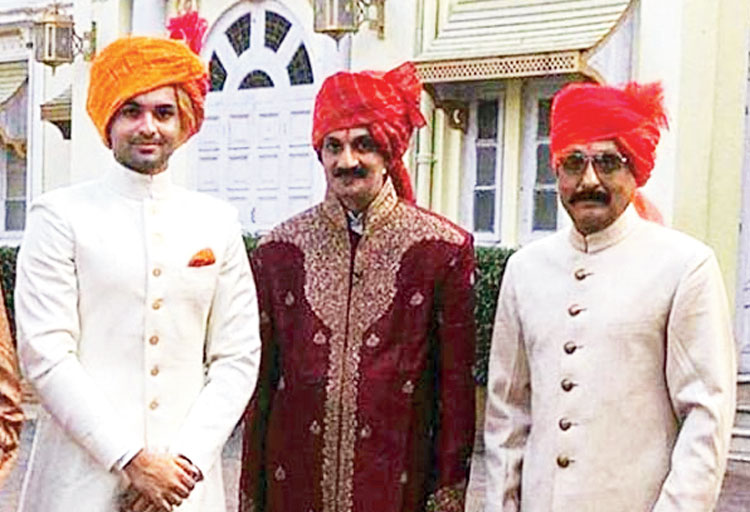 এক অনুষ্ঠানে বন্ধু-পরিজনের সঙ্গে। প্রাসাদের সামনে তোলা