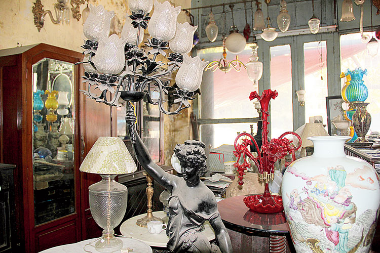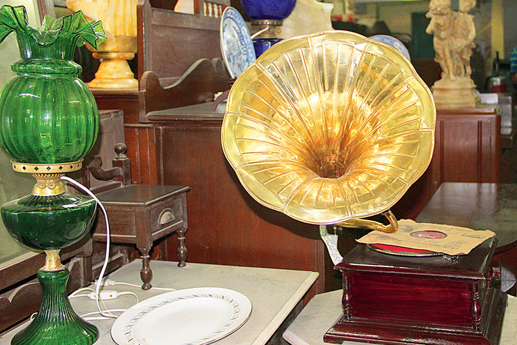 দোকানের অন্য একটা দিক এই ভিড়ভাট্টার দিনেও বড্ড চুপচাপ। অতীতের গন্ধমাখা। দোকানের সাধারণ ক্রেতা-বিক্রেতা কেউ পা দেন না এখানে। জায়গায় জায়গায় রং চটে যাওয়া গ্রামোফোন, কানন দেবীর গাওয়া গানের দুষ্প্রাপ্য রেকর্ড, সূক্ষ্ম কারুকাজ করা সুবিশাল সেগুন কাঠের পালঙ্ক, প্রাচীন আরামকেদারা, লতাপাতার কাজ করা দেরাজ-আলমারি, চার-পাঁচটা আয়না বসানো ড্রেসিং টেবিল, বেলোয়ারি কাঁচের ঝাড়লণ্ঠন, লণ্ঠন ধরে থাকা নারীমূর্তি, শ্বেতপাথরের টেবিল গা-ঘেঁষাঘেষি করে দাঁড়িয়ে। নিস্তব্ধ। ক্রেতার প্রয়োজন পাল্টে যাওয়ায় এগুলি সরাসরি বিক্রি হয় এখন। কলকাতার যে সব বনেদি বাড়ি ভেঙে তৈরি হয়েছে ঝাঁ-চকচকে ফ্ল্যাট, তাদের বিস্মৃত বনেদিয়ানা এসে জড়ো হয়েছে দোকানের অন্দরে। যে সব বাড়িগুলি এখনও টিকে আছে তার বাসিন্দারাও পুরনো জিনিস বিক্রি করে দিচ্ছেন, জানালেন দোকানের এক কর্মচারী।