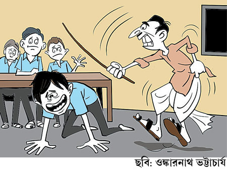 আমাদের সহকারী প্রধান শিক্ষকও বেতের ব্যবহার ভালই জানতেন। শাস্তি দেওয়ার কায়দাটিও ছিল বেশ বিচিত্র। এক বার আমার সঙ্গে এক সহপাঠীর গন্ডগোল হয়। আমি সহকারী প্রধান শিক্ষকের কাছে গিয়ে ওই ছাত্রের নামে নালিশ ঠুকে এলাম। উনি তো আর যাচাই না করে বিশ্বাস করবেন না। তাই ওই ছাত্রটিকে ডেকে পাঠিয়ে, আমার অভিযোগ সম্পর্কে পুঙ্খানুপুঙ্খ খোঁজখবর নিলেন। বিচার করার পর, অভিযুক্ত সহপাঠীকে শাস্তি দিলেন। কী শাস্তি? শুনে আমাদের বুক ধড়াস করে উঠল।
