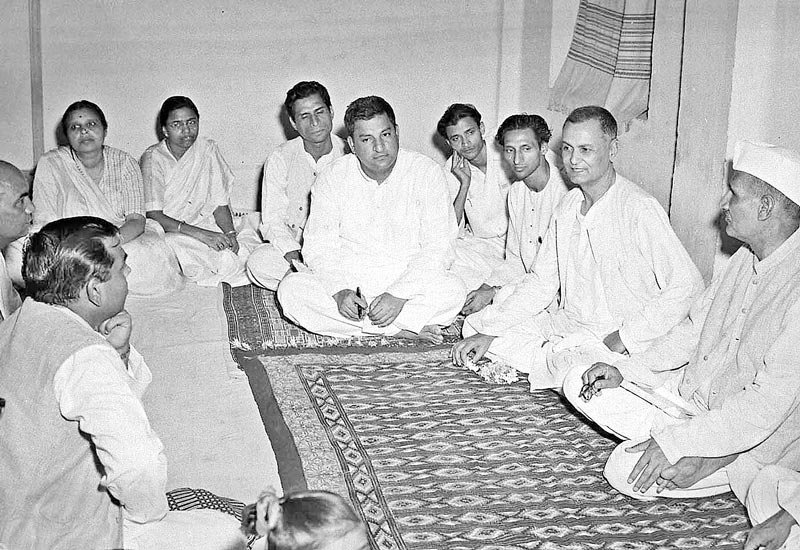 অভিযাত্রী: দিল্লিতে হিন্দি ভাষার লেখকদের সঙ্গে বৈঠকে রাহুল সাংকৃত্যায়ন (ডান দিক থেকে দ্বিতীয়)