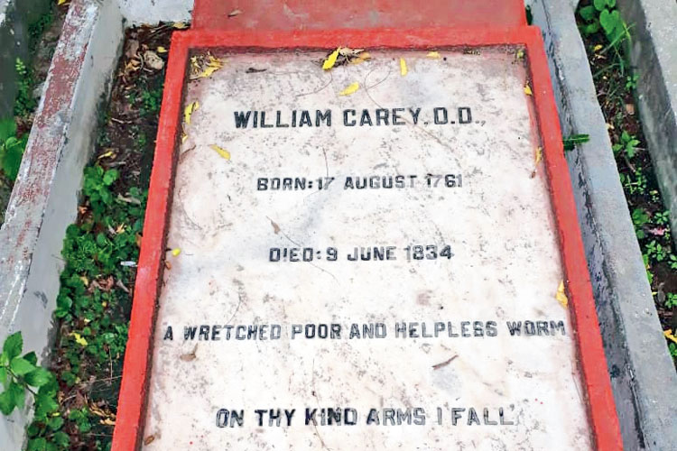 শ্রীরামপুরে উইলিয়াম কেরির সমাধিফলক। ছবি: মোহিত রণদীপ