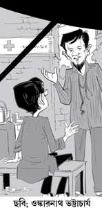 চেম্বারে নিয়ে গেল। সেখানে কংকালের ছবি ঝুলছে, কাবা শরিফের ছবিও। চেম্বারে দু’তিন জনকে অল্প কথায় বিদায় করল। এক জনকে বলল, লিখেছিলাম লিঙ্গাকেনি মলম, কিনে রেখো। আমি পরে বলি— এ রকম নামের মলম হয় না কি? ও বলল, আসলে লিগ্‌নোকেন। ওটাই লিখেছি, কিন্তু বলি এটা, লিঙ্গের অগ্রভাগ কাটতে হয় কিনা... জিজ্ঞাসা করি ডিগ্রির মধ্যে ‘এ.এম.’-ও লেখা আছে দেখি, এর মানে কী? ও বলল, অল্টারনেটিভ মেডিসিন। কিছু ক্ষণ গল্প হল। জানলাম কাঁথা স্টিচ শাড়ি এ সব অঞ্চলেই হয়। মুসলমান মেয়েদের হাতের ছুঁচ-সুতোয় ফুল-পাখি-মাছ-হাতি তৈরি হয়। এরা মজুরি হিসেবে খুব বেশি রোজগার করে না। ও বলল, ওর শ্বশুরবাড়ি এ তল্লাটেই। বিরাটির কাছে ফতুল্লাপুরে ওরা থাকত, বিরাটি জায়গাটার রমরমা হতেই ফতুল্লাপুরেও জমির দাম হুহু করে বেড়ে গেল। অনেকেই জমি বেচে অন্যত্র চলে গেল। ওখানে বহু ফ্ল্যাটবাড়ি হয়ে গেছে। কোয়াক ডাক্তারি ওখানে ভাল চলত না। বাবার ইন্তেকালের পর এ দিকে চলে এসে প্র্যাকটিস করছে।