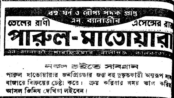 আবার, এই সময় থেকেই জাতির কাঁধে জাঁকিয়ে বসছে ক্রিকেট আর সিনেমা। বাড়ছে খেলার সরঞ্জামের বিকিকিনি আর চিত্রতারকার মতো রূপলাবণ্যের প্রসাধন। নামগুলোও চমৎকার। পারুল মাতোয়ারা এসেন্স (যার বিপুল জনপ্রিয়তার কারণে বাজারে নকল বেরিয়েছে), প্যারিস হেয়ার কার্লিং লোশন (তিন দিনেই চুল কোঁকড়াইতে শুরু করে ও প্রত্যহ স্নান করিলেও নষ্ট হয় না। বম্বের তারকারা ব্যবহার করেন)।