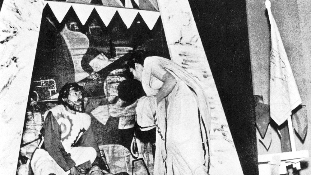 মঞ্চশিল্প: শম্ভু মিত্রের ‘রক্তকরবী’। মঞ্চ ও সঙ্গীত, দুয়েরই দায়িত্বে ছিলেন খালেদ চৌধুরী