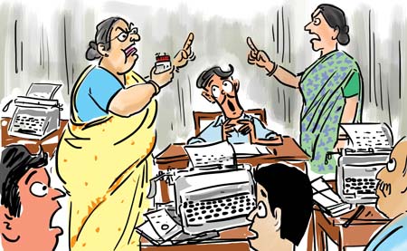 প্রথম দিন। বেশি প্রশ্ন করা যাবে না। হাজির হলাম ননীবাবু সমীপে। মেজো মাপের কর্তা। দেওয়াল-ঘেঁষা টেবিল। চতুর্দিকে গোটা দশেক টাইপমেশিনের খটখটাস। সেই মুহূর্তে ননীবাবুর টেবিল ঘিরে কয়েক জন ললনা কলকলায়মান। এক জন পৃথুলা ভেজা-ভেজা নাকি সুরে বলছিলেন, ‘আমার ড্রয়ারে রাখা চিনির কৌটোয় পিঁপড়ে ছেড়ে দিচ্ছে ও। আপনি দেখুন। না হলে... না হলে...’ আর বলতে পারলেন না তিনি। কান্না নাক ছেড়ে গলার দখল নিল।