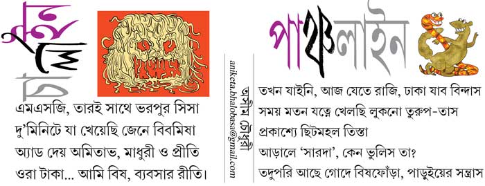 নাটাদাকে গুন্ডা বলেই জানতাম। গুন্ডাদেরও এখনও দেখি না তেমন। কানাদা, নাটাদা, খোকাদারা নিজেদের গুন্ডা বলতে লজ্জা পেত না। বাগবাজার ছেড়েছি অনেক দিন। বছর দশেক আগে দেখা হয়েছিল, কুঁজো হয়ে গেছে, হাঁপানি ধরেছে। বললাম, চেনাই যাচ্ছে না তোমায়! নাটাদা বলল, ‘এরম হয়। আজ উত্তমকুমার বেঁচে থাকলেও দাঁত থাকত না, গাল ভাঙত, মাথায় টাক পড়ত।’ কথায় কথায় বলল, ‘যাই বল, গুন্ডামিটা আমরাই করে গেছি বুক ফুলিয়ে। এখন এক পিস পিয়োর গুন্ডা দেখাতে পারবি? যে বুক বাজিয়ে বলতে পারবে ইয়েস, আই অ্যাম গুন্ডা! মাঈ কি লাল! সব শালাই বলে আমি সমাজসেবী। তোরা তো জানিস, পাড়ার ভালমন্দটা আমিই দেখতাম। একটা তুড়িতে লোক চমকে যেত। আমাদের বাইক লাগত না, বাইসেপ লাগত। পাড়ার প্রেস্টিজ রাখবার জন্য বোম বানাতাম, নিজে হাতে, দু-চারটে শিষ্যকে শিখিয়েছিলাম। এখনকার বাবুরা রেডিমেড বোম কিনছে, বাইরে অর্ডার দিচ্ছে। নিজে হাতে কদমা, বেদানা, বাতাবি— সব সাইজের বোম বানিয়েছি। পেরেক-ফেরেক দিতাম না খুব একটা। লোক তো মারতে চাইনি, লোক ভড়কানোর জন্য ফক্কা বানাতাম। ধোঁয়া আর শব্দ। এখনকার খোকাবাবুরা সোডার বোতল নেয় মাল খাওয়ার সময়। আমরা কিচাইনের সময় কাচের সোডার বোতল ঝাঁকিয়ে, বাঁকিয়ে ছুড়তাম। সেই আর্ট নষ্ট হয়ে গেল।’