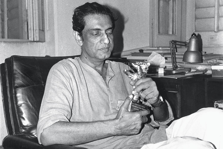 বার্লিন চলচ্চিত্র উৎসবের সেরা পুরস্কার ‘গোল্ডেন বেয়ার’ হাতে সত্যজিৎ রায়।