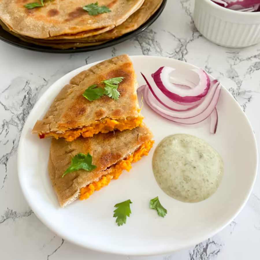 রাঙা আলু সেদ্ধ করে আটার সঙ্গে মেখে নিন। দেখবেন জল দেওয়ার প্রয়োজন হবে না। এবার ওই মণ্ড দিয়ে রুটি বা পরোটা বানিয়ে নিন। অথবা রাঙা আলু সেদ্ধ করে তা দিয়ে পছন্দের মশলা এবং নুন-মিষ্টি দিয়ে পুর তৈরি করুন। পরোটার একটু বড় লেচি বানিয়ে তার মধ্যে পুর ভরে বেলে ঘিয়ে নেড়ে নিন। রাঙা আলুর রুটি বা পরোটা সাধারণ আলুর পরোটার থেকে অনেক বেশি নরম এবং ফাইবার সমৃদ্ধ হয়।