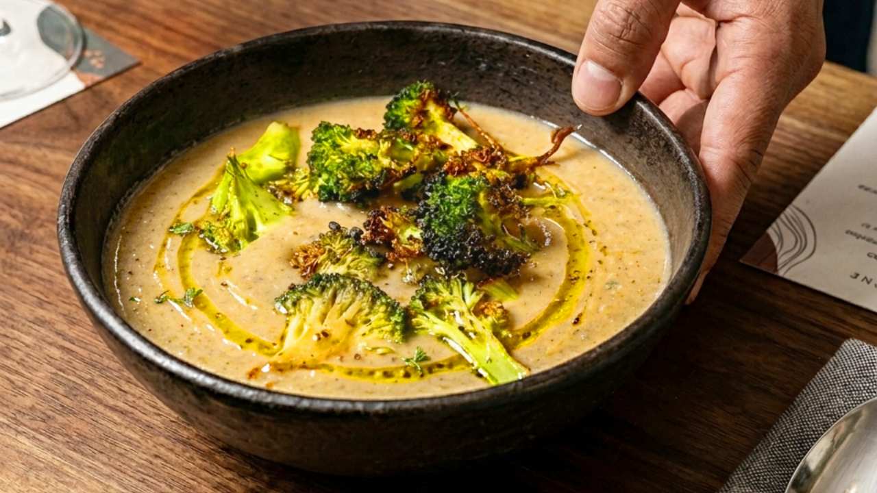 এ বার ব্রকোলির টুকরোগুলো ভাপিয়ে সামান্য ঘি, মাখন বা অলিভ অয়েলে ভেজে তুলে নিন। স্যুপের উপর ব্রকোলি আর সামান্য মাখন বা অলিভ অয়েল ছড়িয়ে পরিবেশন করুন।