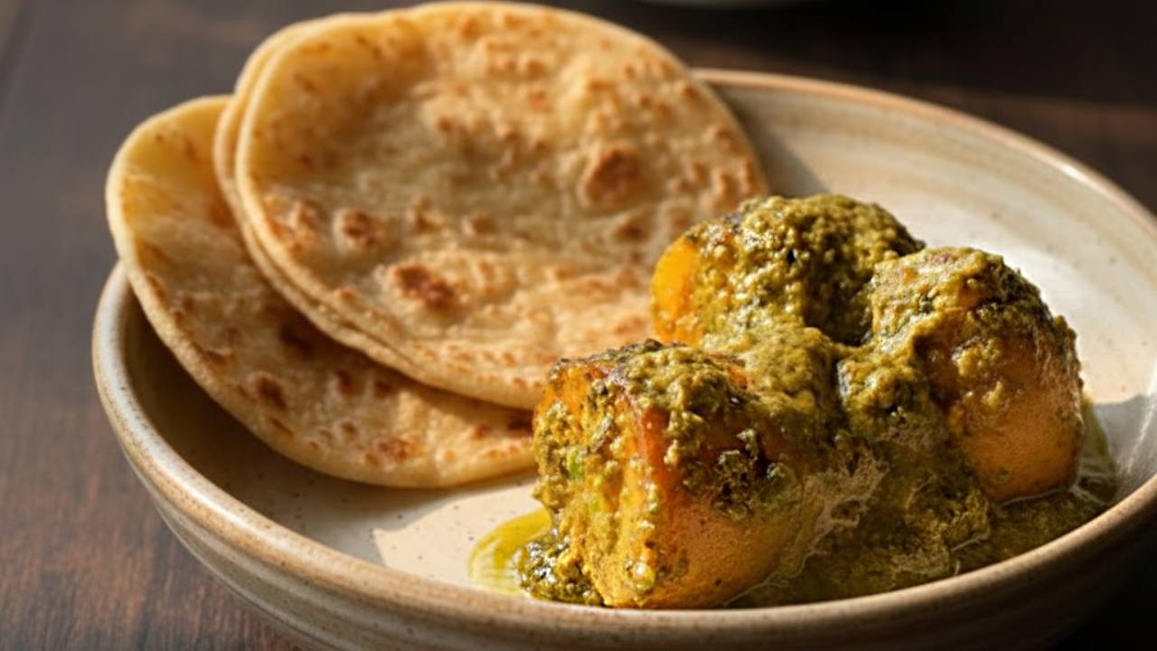 রান্নার নাম ধনে আলুর দোলমা। সবুজ গাঢ় মখমলে মশলায় কষানো আলু। তার ভিতরে ছানা কড়াইশুঁটির পুর। টক-ঝাল-মিষ্টি এই নিরামিষ রান্না বাড়িতে হলে অনেক আমিষপ্রেমীও আমিষ ছেড়ে নিরামিষ খেতে চাইবেন।