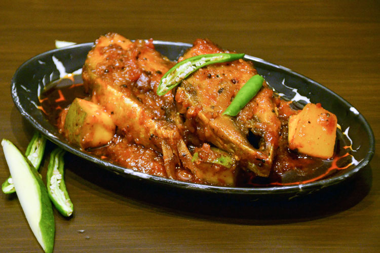 ইলিশ আম-তেল। ‘চিলেকোঠা’-র জামাইষষ্ঠীর মেনুর অন্যতম আকর্ষণ।