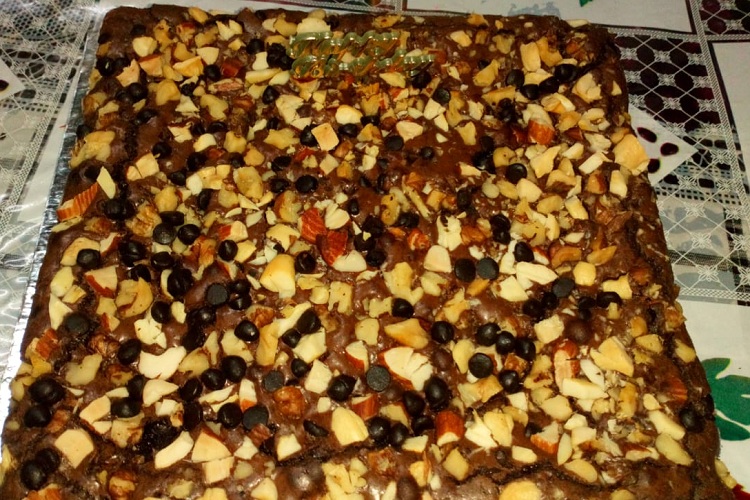 ডিম ও চিনি একসঙ্গে মিশিয়ে ব্লেন্ডারে ফেটিয়ে নিন। এ বারে এতে ময়দা দিয়ে ধীরে ধীরে মিশয়ে নিন, মিশ্রণ যেন স্মুদ হয়। এ বারআভেন প্রিহিট করে নিয়ে ডার্ক চকোলেট ৮ – ৯ ইঞ্চি স্কোয়ার প্যানে রেখে ৩০ সেকেন্ড গরম করে নরম করুন। মিশ্রণ ভাল করে মিশিয়ে নিন। এ বারে স্কোয়ার পাত্রে ১৮০ ডিগ্রি সেলসিয়াসে ৩৫ মিনিট বেক করতে হবে। তার আগে মিশ্রণের উপরে রোস্টেড নাটস ছড়িয়ে দিন। বেক হয়ে গেলে গরম অবস্থায় চকো চিপস ছড়িয়ে নামিয়ে পরিবেশন করুন।