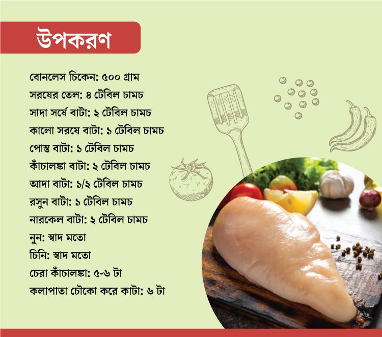 এমনিতে বাড়িতে চিকেন হলেই নয় কষা আর নয়তো কারি। খুব বেশি হলে সময়-সুযোগ দুই-ই মিললে নতুন কোনও রেসিপি নিয়ে বাবনাচিন্তা চলে। তবে এ বার আর সময়ের তোয়াক্কা করার দরকার নেই। সহজলভ্য আর অল্প কয়েকটা উপকরণ দিয়ে খুব কম সময়ে বাড়িতেই বানিয়ে ফেলা যায় ভিন্ন স্বাদের চিকেনের এই রেসিপি।