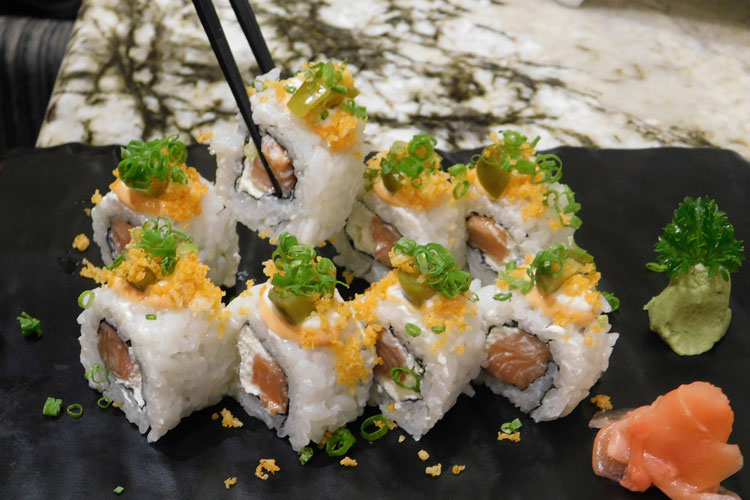 ঠিক যেমন রয়েছে কোয়েস্ট মল-এর ফিফ্থ ফ্লোরে ‘আজিশাই’ ও ওই মলেরই সিক্সথ ফ্লোরে ‘স্কাই’। রেনবো রোল, মাগুরা টেমাকি, চিজ থিন রোল আজিসাই-এর অন্যতম সিগনেচার ডিশ। একটু পরিপাটি করে বাব্‌ল-সহ সুশি খেতে গেলে আবার পাড়ি দিতে হবে ‘স্কাই’-এ। মায়ো অ্যান্ড স্কেলিয়ন সুশি, ওয়াশাবি এয়ারের টানে বার বার যেতে ইচ্ছা করবে এই রেস্তরাঁয়।
